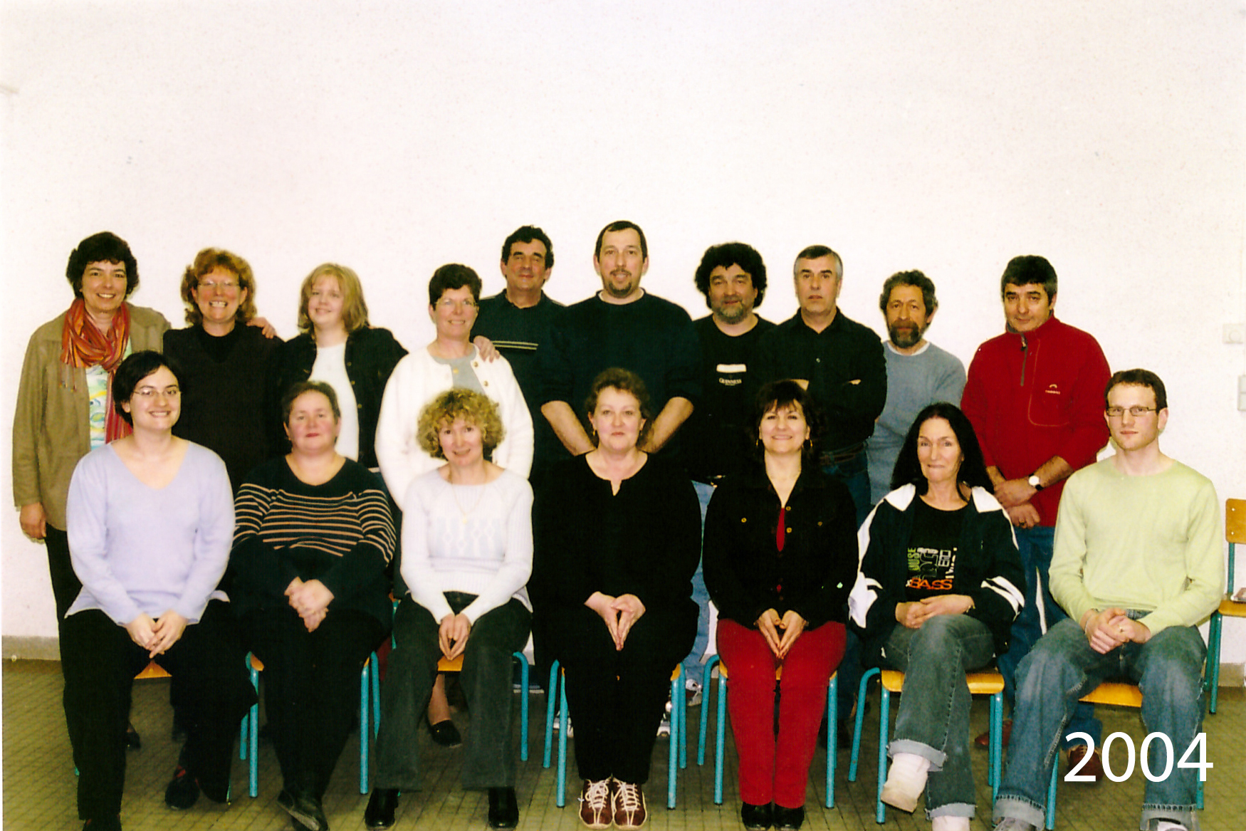……Devenue Présidente, sa Maman Catherine secrétaire, la voisine Brigitte trésorière, ce trio recrute une dizaine d’amateurs pour la plupart de la commune sans notion de musique. La troupe ainsi constituée est orchestrée par un gamin, Nicolas Renaux, à peine majeur à cette époque, mais la différence d’âge, de génération n’effraye ni les uns, ni les autres et partent vers l’aventure.