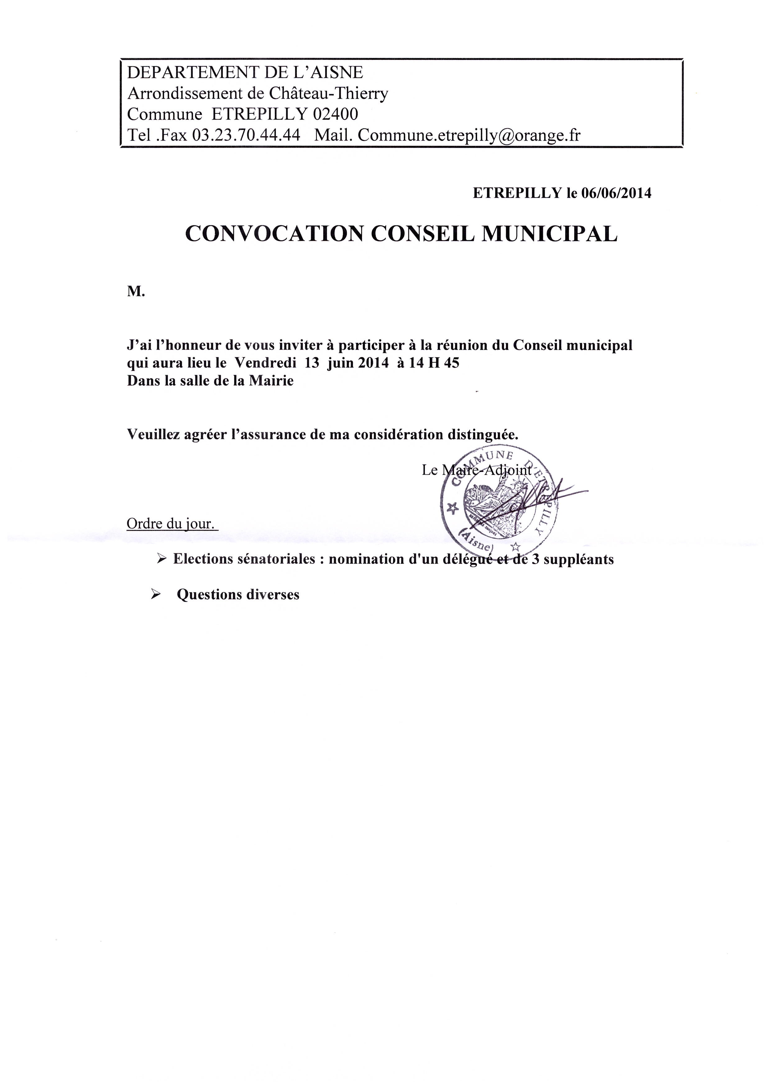 Vendredi 13 juin 2014 à 14H45 (à la Mairie)