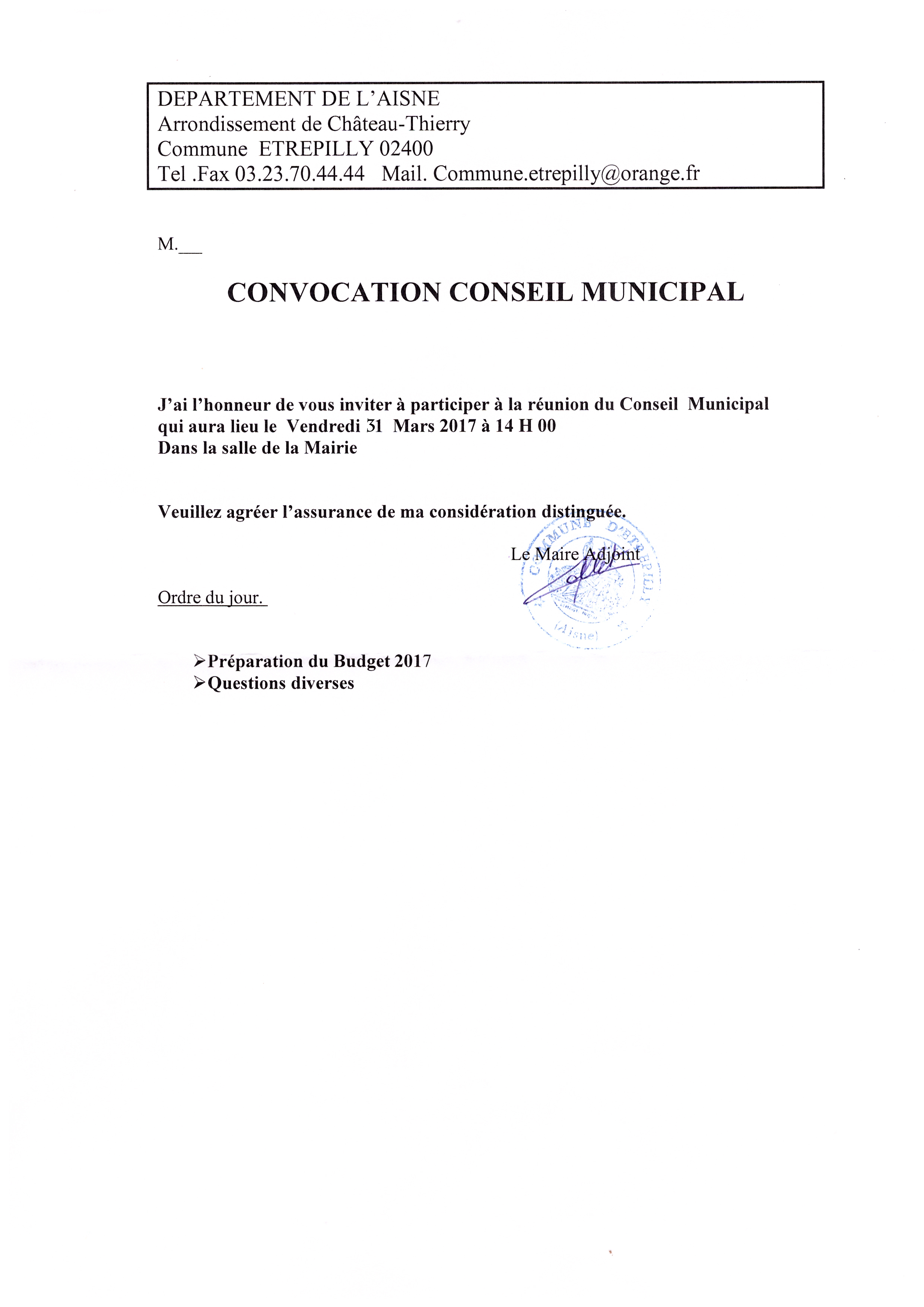 Vendredi 31 mars 2017 à 15h (à la Mairie)