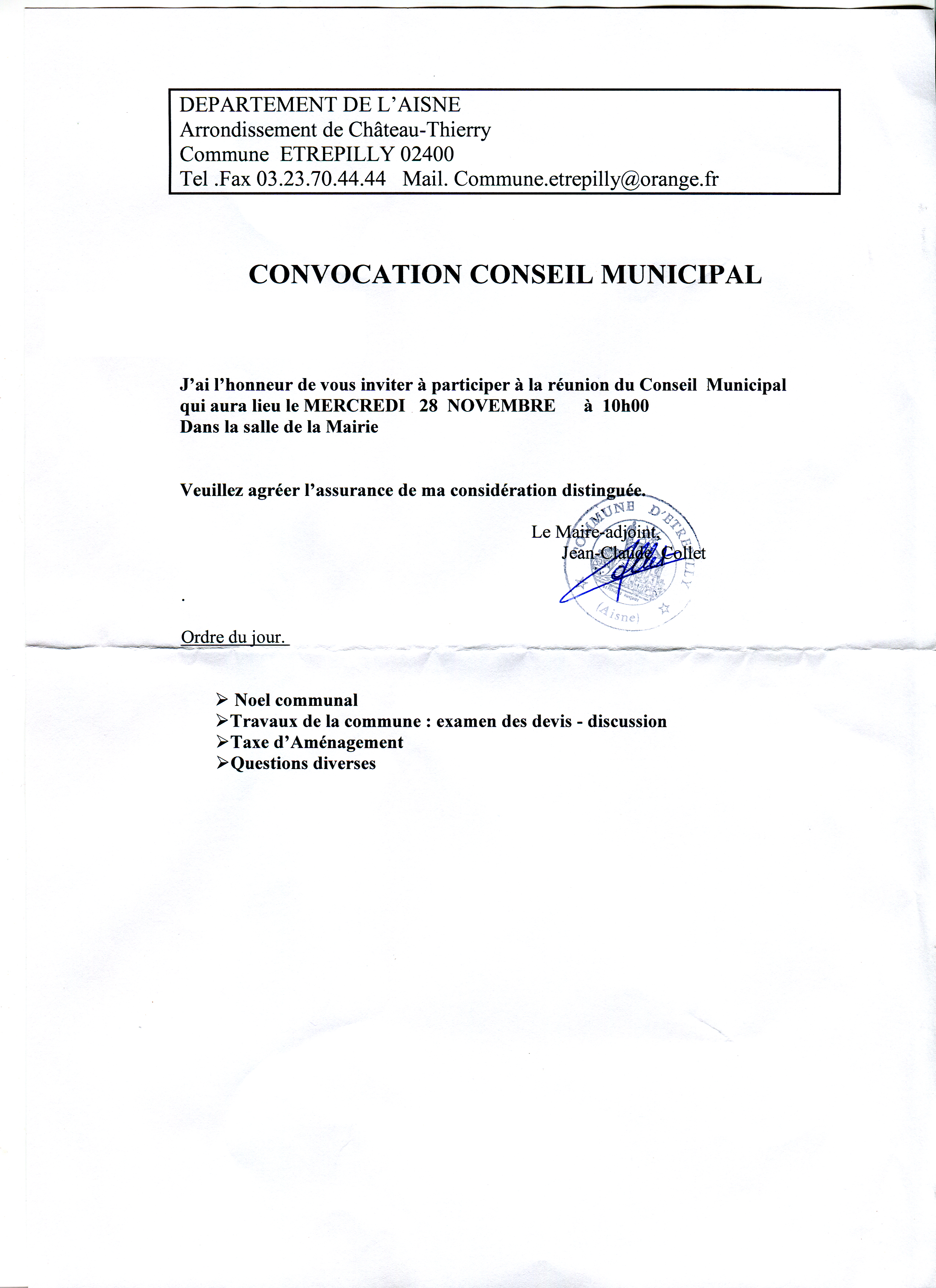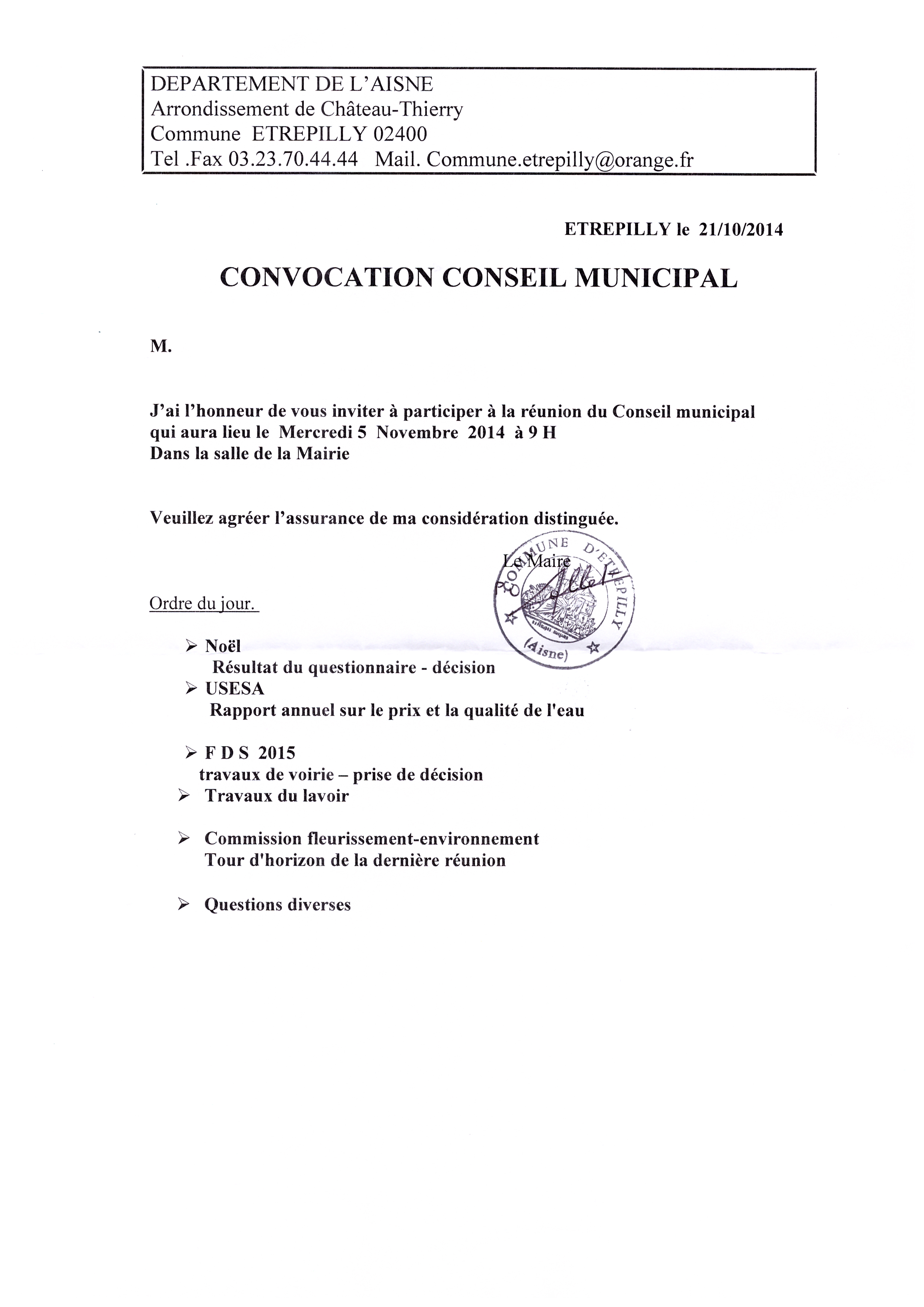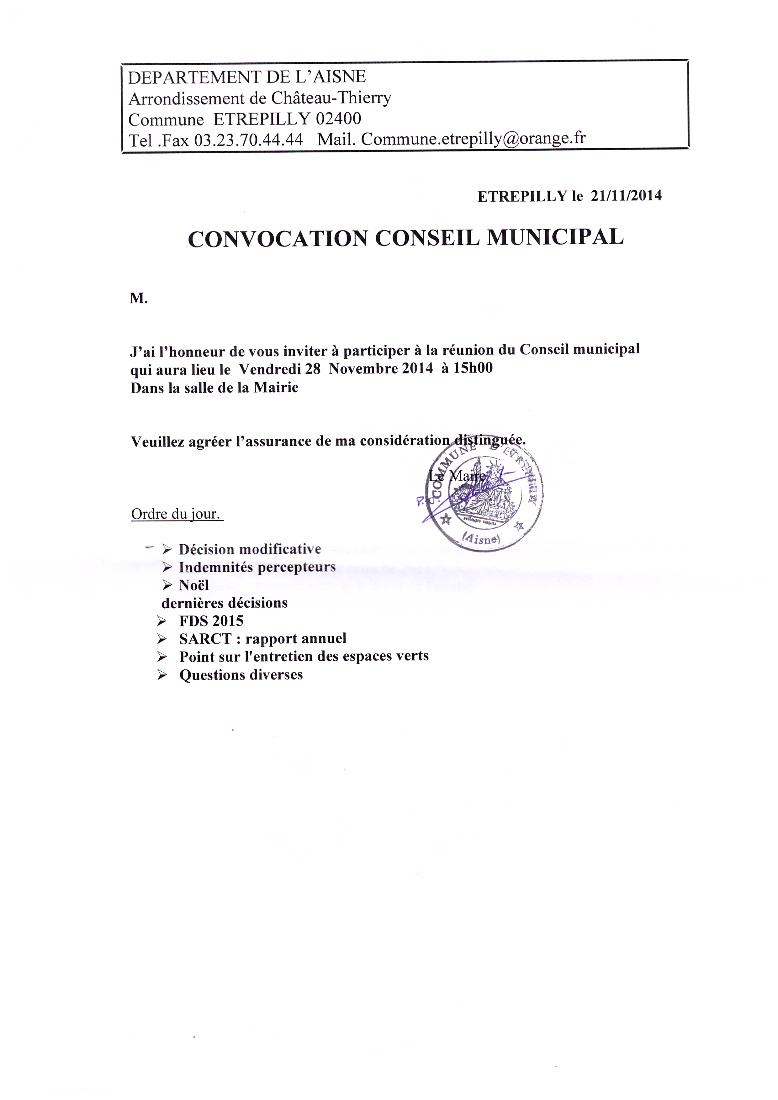 Vendredi 28 novembre 2014 à 15h (à la mairie)