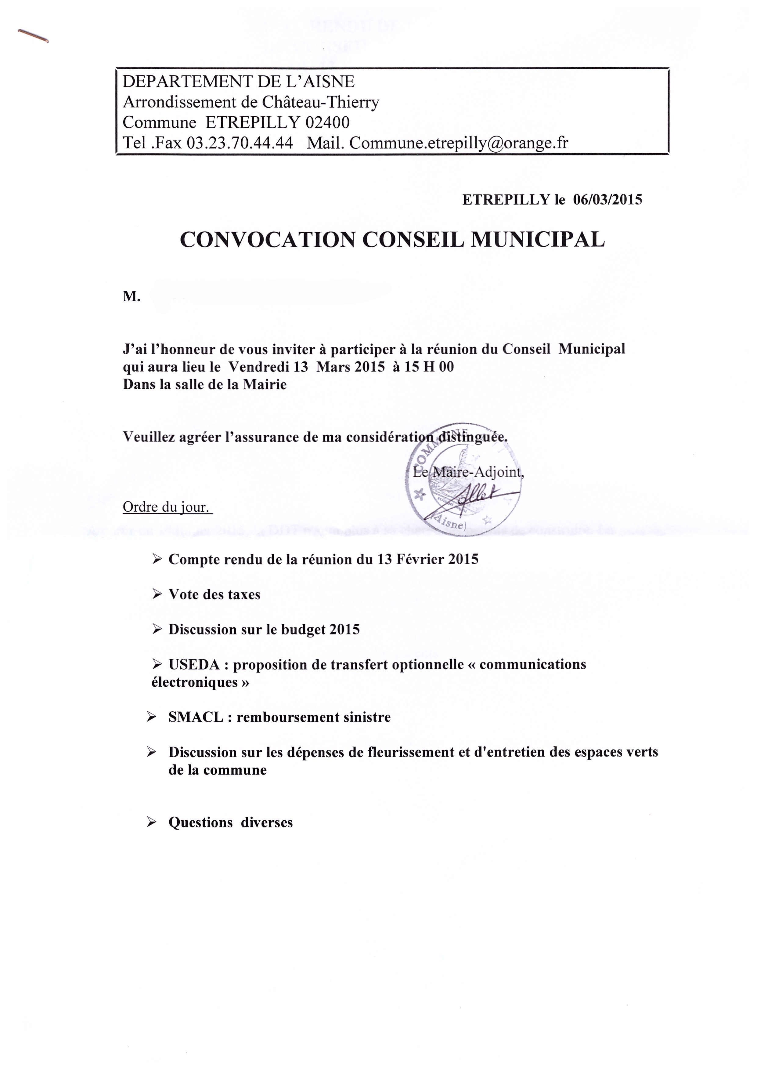 Vendredi 13 mars 2015 à 15h (à la mairie)