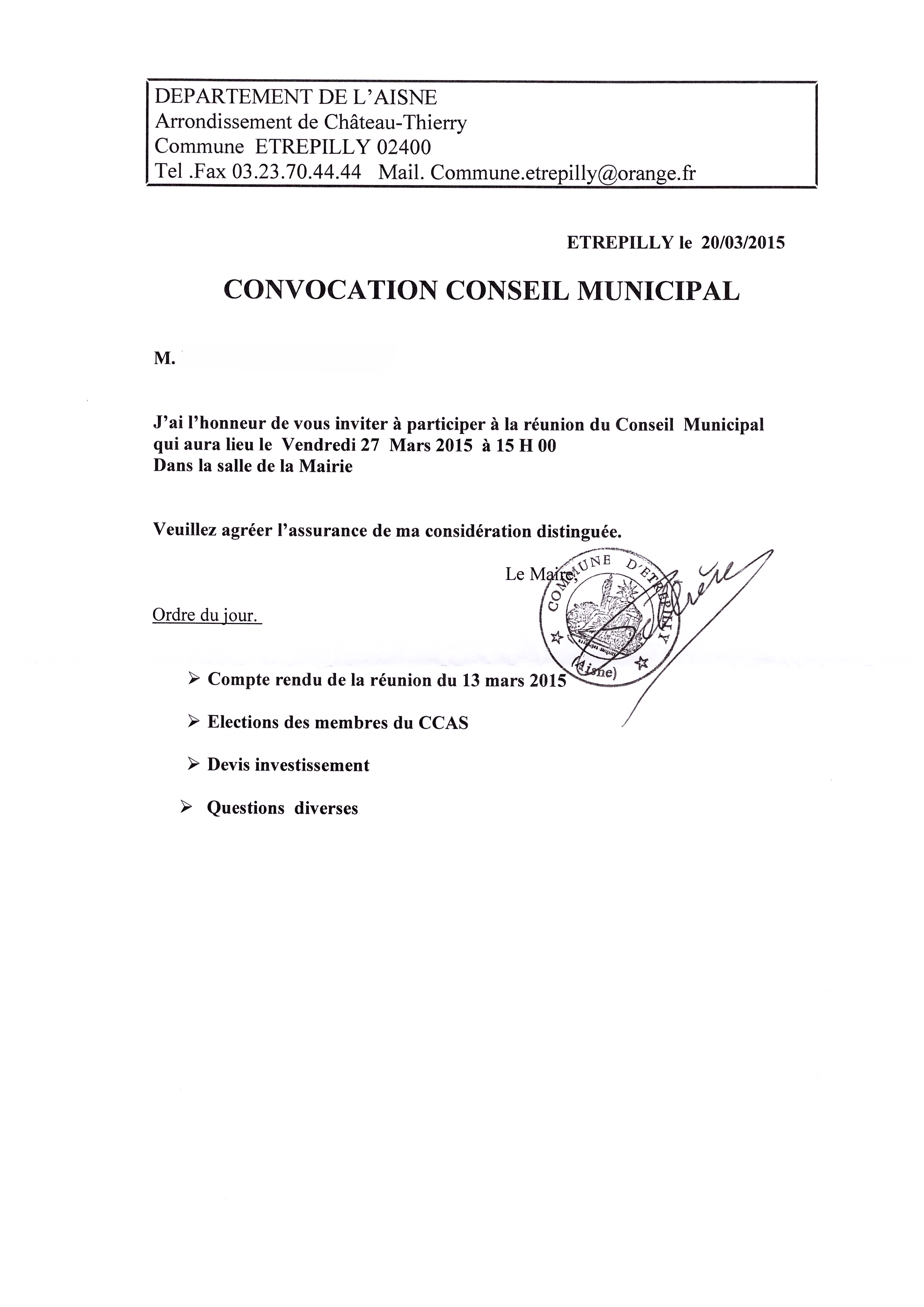 Vendredi 27 mars 2015 à 15h (à la mairie)