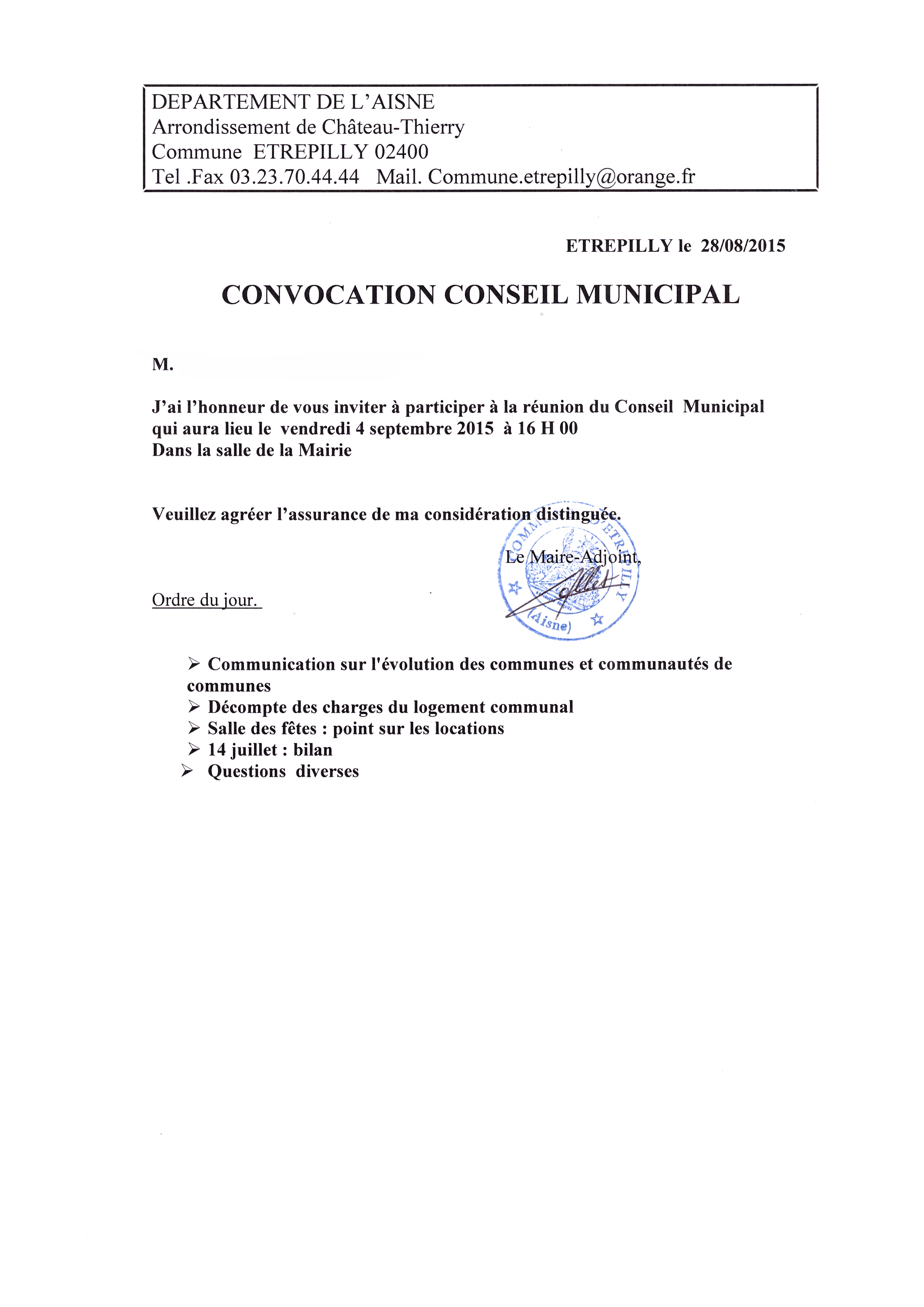 Vendredi 4 septembre 2015 à 16h (à la Mairie)