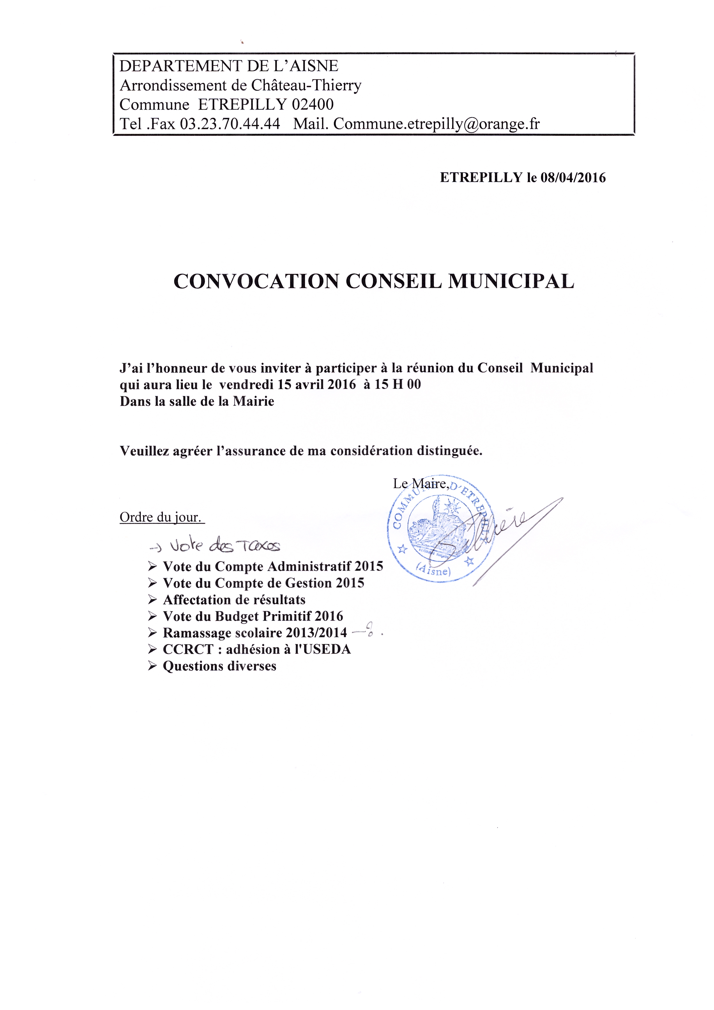 Vendredi 15 avril 2016 à 15h (à la mairie)