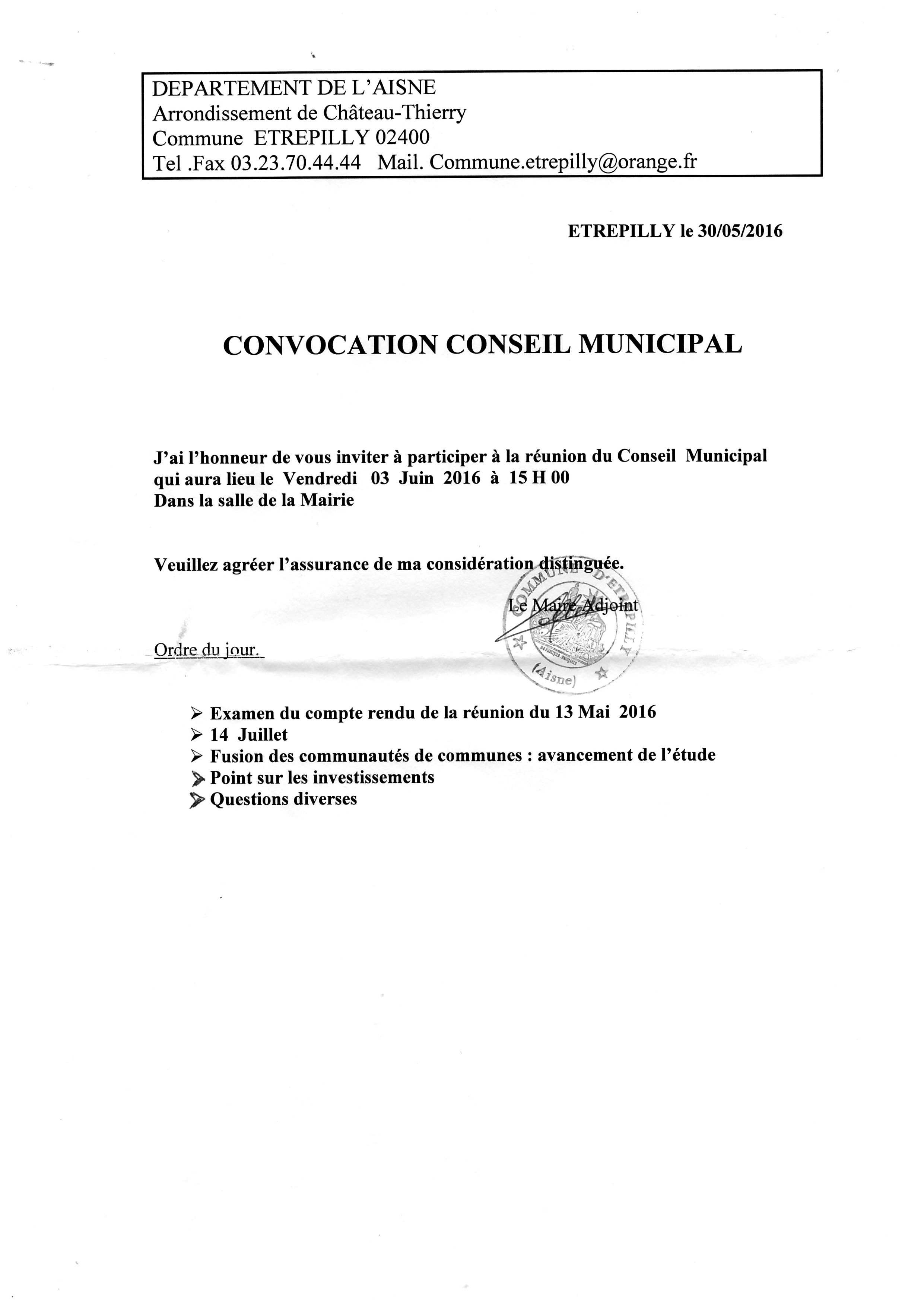 Vendredi 3 juin 2016 à 15h (à la Mairie)