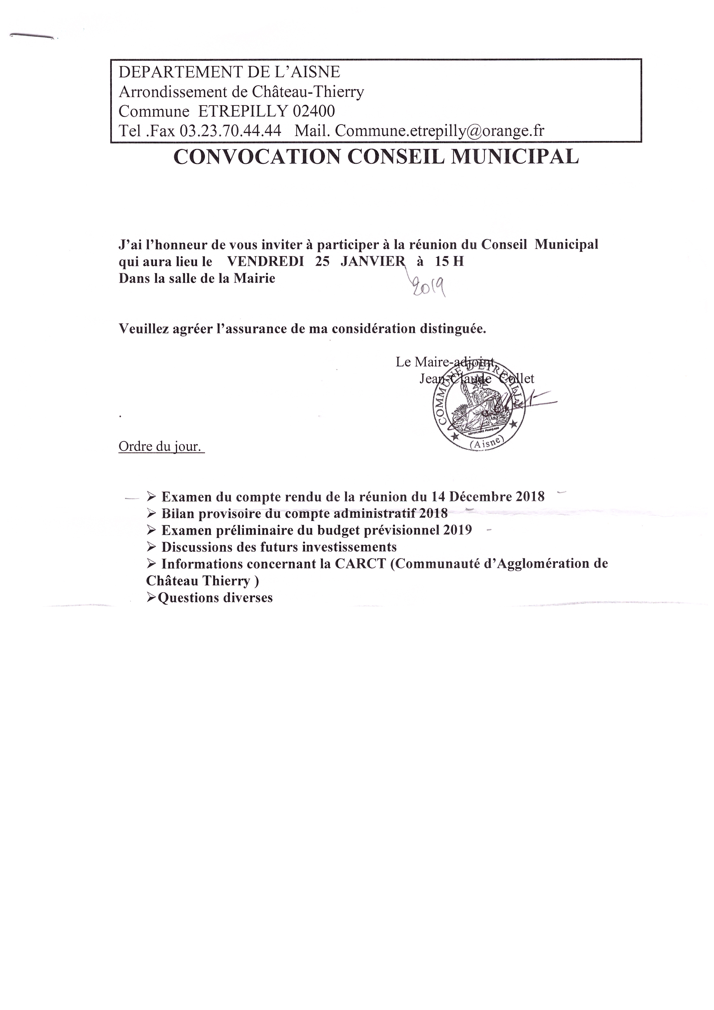 Vendredi 25 janvier 2019 à 15h (à la Mairie)
