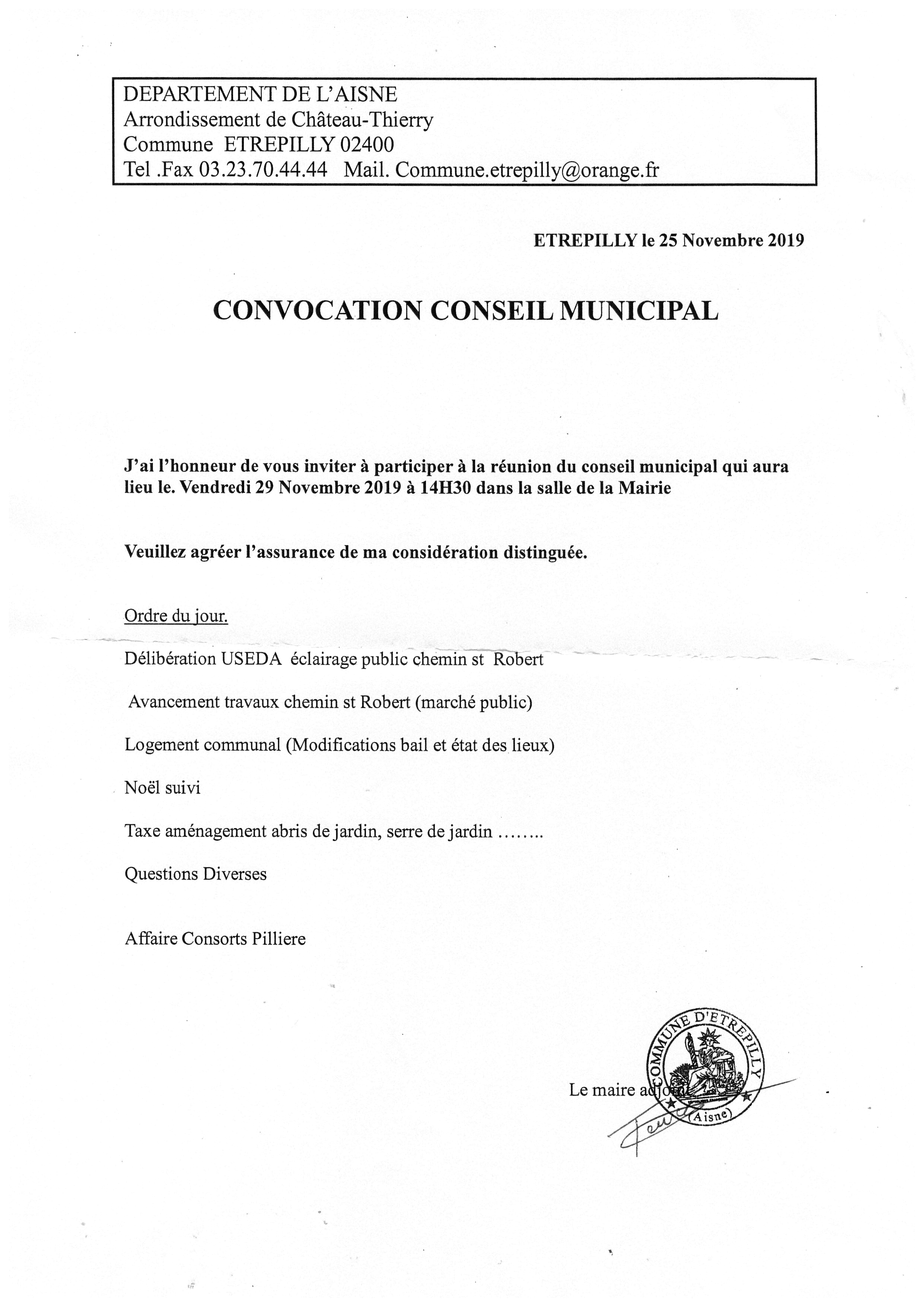 Vendredi 29 novembre 2019 (à 14h30 à la Mairie)